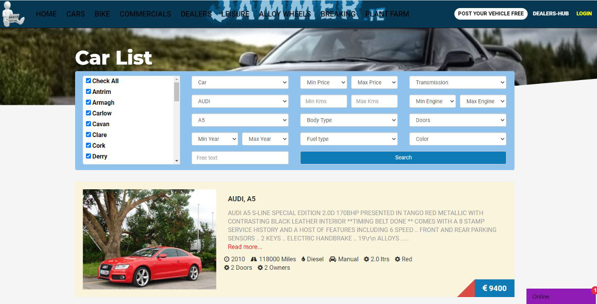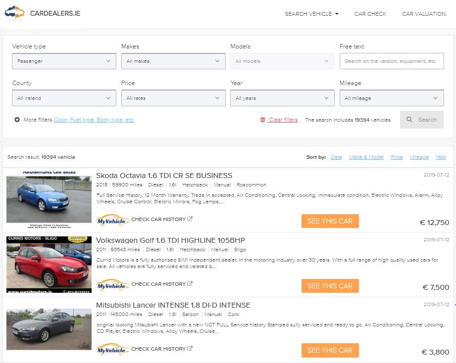 Serwis z ogłoszeniami samochodów do sprzedaży. Zawartość ogłoszeń pochodzi ze stron dilerów, serwis przekierowuje do nich zainteresowanych użytkowników.